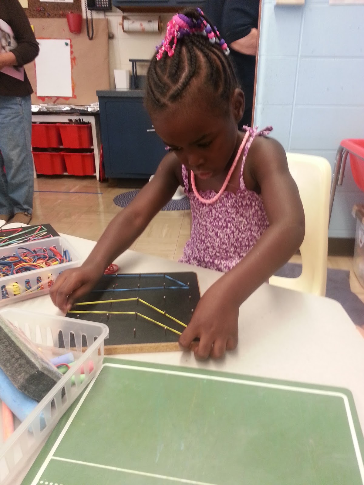 "No, mom. I can't see well. I need to sit on a letter close to Mrs. Volz so I can see the pictures."